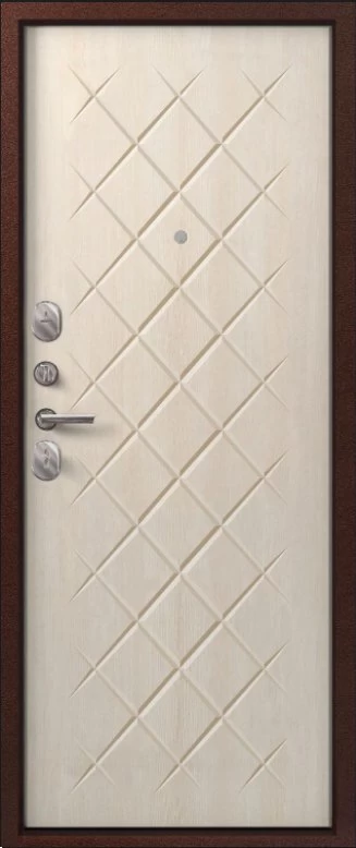 Надежная входная Дверь V-02 медь антик - седой дуб премиум класса по цене 36 945 руб. Большая толщина стали защитит от проникновения в ваш дом, квартиру или коттедж. Используется очень качественная фурнитура: замки, цилиндры, ручки, защелки. Покрытие и отделка двери изготовлено под внимательным контролем производителя. Дверь имеет долгий срок службы и гарантию.